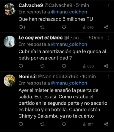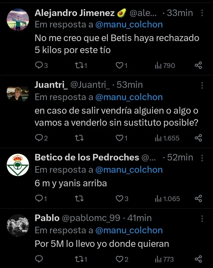 As informações do jornalista Manu Colchón dão conta que o Bétis quer 6 milhões de euros pelo atleta com passagem pelo São Paulo. O Alviverde pode oferecer essa diferença em bônus por metas.
