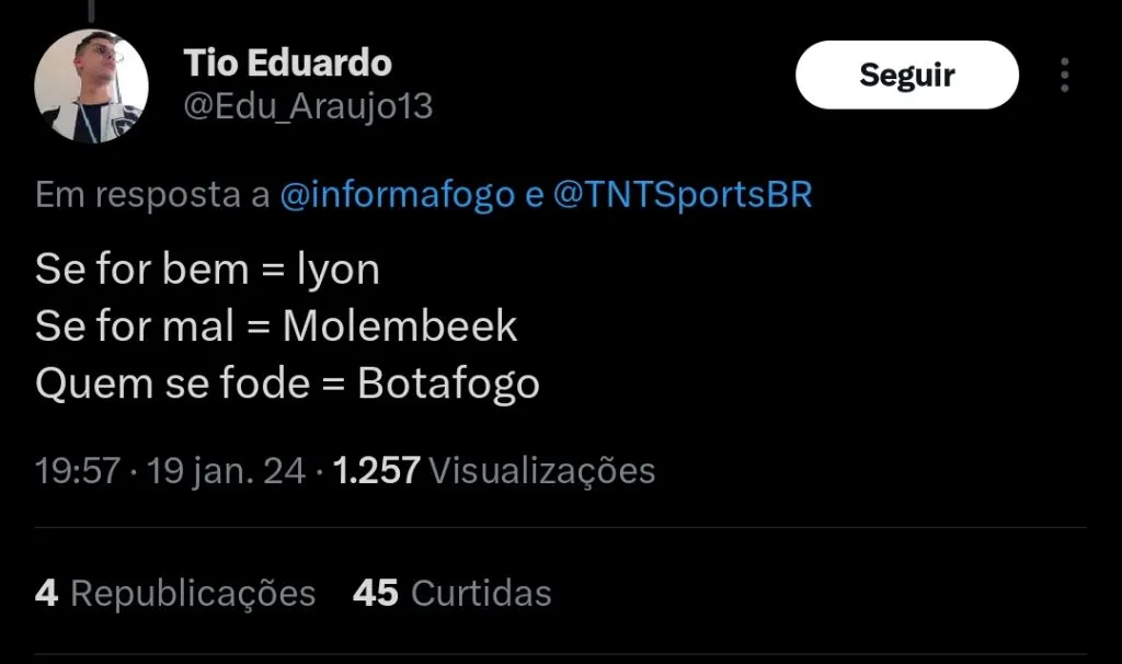 No momento, o valor da proposta é mantido em sigilo pelas partes envolvidas nas tratativas. Textor e Tiago Nunes gostam bastante do jovem jogador da equipe paulista.
