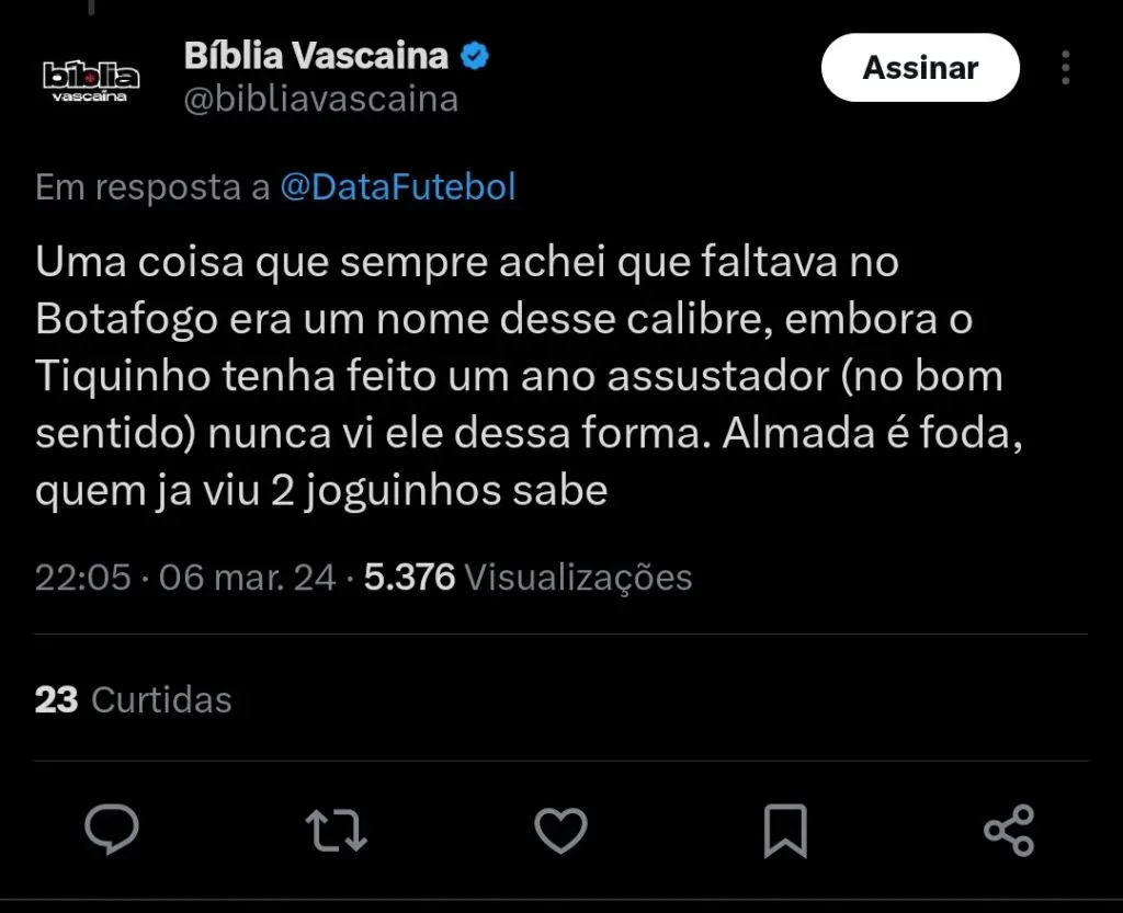 O jornalista Thiago Fernandes informa que o Botafogo fez uma proposta astronômica pela contratação do meio-campista Thiago Almada.
