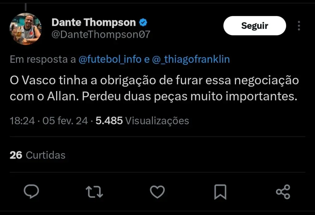 Entre Allan e Botafogo já está tudo certo, inclusive ele já assinou um pré contrato com a equipe, e pode chegar de graça em junho. Porém, o alvinegro segue negociando com os Sauditas e esperam contar com o jogador ainda neste início de temporada.