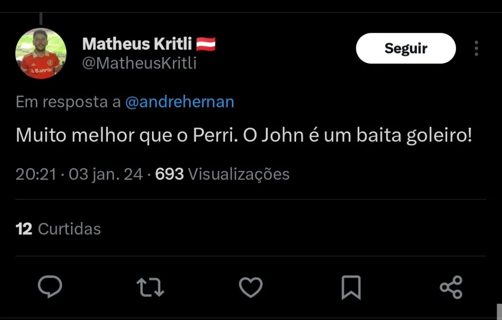 John teve passagem pelo Santos, e mais recentemente pelo Internacional antes de ser negociado com a equipe espanhola. Ele estava no radar do alvinegro há bastante tempo, e era a principal opção para substituir Lucas Perri entre as traves do time titular.