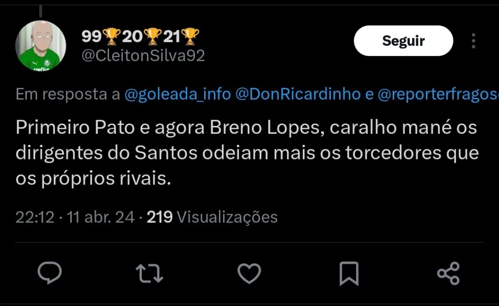 Os jornalistas Rodrigo Fragoso e Ricardinho Martins informam que Breno Lopes está muito próximo de acertar com o Santos.