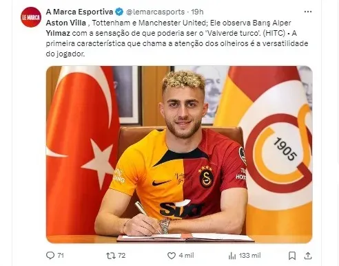 Com cinco gols e três assistências no Campeonato Turco 2023/24, Yilmaz tem sido fundamental para a campanha do Galatasaray rumo a mais um título nacional.