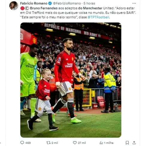 Bruno Fernandes, estrela do meio-campo do Manchester United, assegurou aos fãs que deseja continuar no clube, apesar dos rumores de transferências para times como Bayern de Munique, Inter de Milão e Al-Nassr.