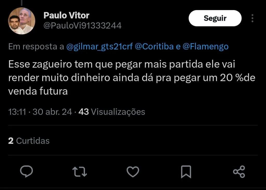 Além do gigante paulista, a fonte informa que outros clubes de grande porte também tem interesse em Cleiton. O Grupo City, fundo de investimento dono do Bahia, e algumas equipes da Europa também observam o defensor.