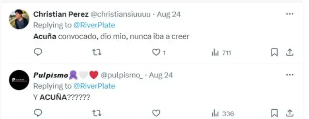 Embora acreditasse que Acuña poderia continuar jogando nas ligas mais competitivas da Europa, Sánchez Flores entende a decisão do argentino de voltar ao seu país para jogar no River Plate. Segundo ele, essa escolha foi motivada pelo desejo de se reconectar com suas raízes e estar em um ambiente mais familiar.