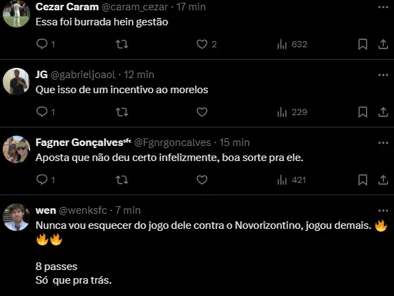 “Todas as formalidades foram cumpridas e o atleta já foi liberado para seguir com a carreira. Contratado em dezembro de 2023, Marcelinho atuou em cinco jogos com a camisa do Peixe”, completou o SFC.
