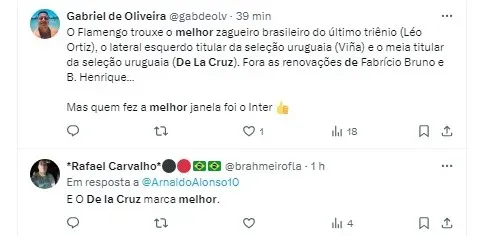 “Eu considero o De La Cruz a melhor contratação dos últimos anos entre todas as equipes brasileiras. O uruguaio se encaixou como se já estivesse jogando no Flamengo a muito tempo. A velocidade do toque de bola aumentou e o meio campo do Tite ficou muito mais rápido e com mais movimentação do que tinha em 2023”, iniciou Casagrande.
