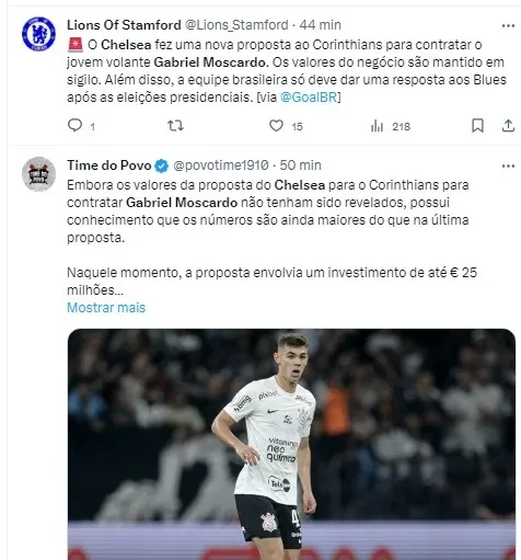 O Chelsea, renomado clube inglês, está determinado a garantir a contratação do jovem meio-campista Gabriel Moscardo, e enviou uma nova proposta formal ao Corinthians no atual mercado de transferências.