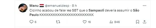 Em uma abordagem autêntica, Cicinho não concorda necessariamente com a demissão de Carpini, mas sugeriu um nome que poderia trazer uma mudança positiva para o time do Morumbi: Jorge Sampaoli.