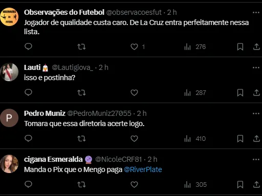 Uma coisa ajuda o CRF agora, além da grana: “Quando estava fechando a janela, o River estava disputando vaga com o Internacional na Libertadores, e ele (De La Cruz) queria muito continuar para poder ganhar”, lembra Landim.