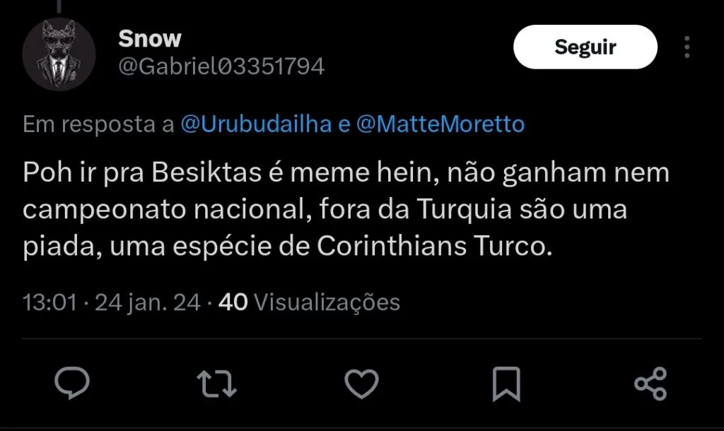 O jornalista Matteo Moretto revela que o Besiktas entrou na disputa com o Flamengo pela contratação de Domingos Duarte.