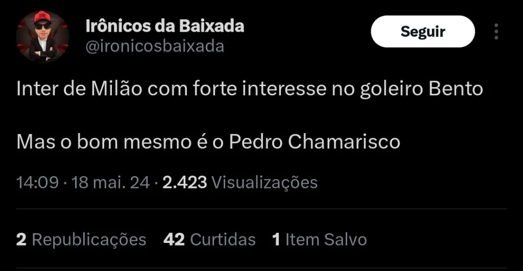 Inter de Milão não desiste de Bento