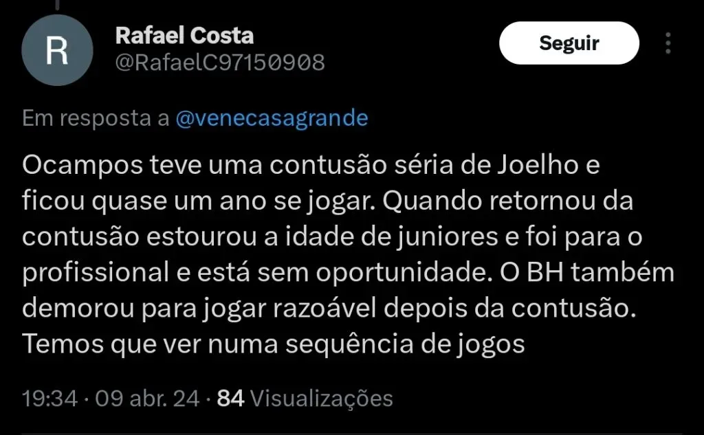 O jornalista Venê Casagrande informa que o Flamengo encaminhou o empréstimo do lateral direito Santiago Ocampos.
