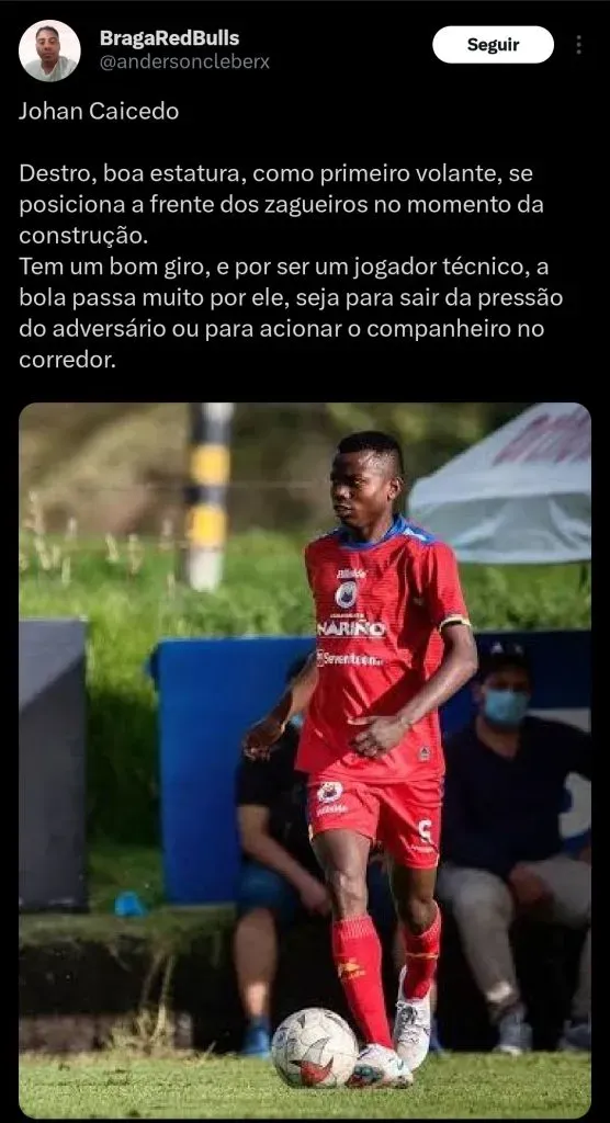 Após muita especulação, o jornalista Pipe Sierra afirma que o RB Bragantino chegou a um acordo com o Deportivo Pasto pela contratação de Johan Caicedo.