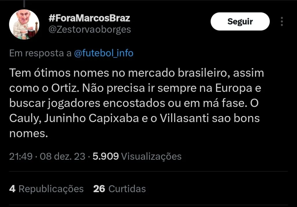 Para resolver este problema, a diretoria foi atrás de um dos principais jogadores do Brasileirão e encaminhou a sua contratação nesta sexta-feira.