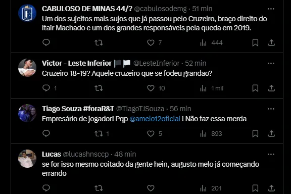 “As conversas com Djian estão avançadas. A experiência do ex-jogador na diretoria de futebol do Cruzeiro é o que fez o novo mandatário escolher pelo executivo”, sinaliza a publicação.