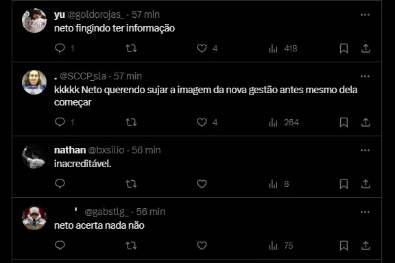 “O ex-zagueiro defendeu as cores do Corinthians entre 1987 e 1993. Depois disso, teve passagens por Lyon, Cruzeiro e Atlético-MG”, finalizou o GOAL na apuração de Thiago Fernandes.