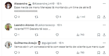 O Corinthians, por sua vez, tinha a expectativa de anunciar reforços, porém, Pablo, do Flamengo, deve ir para o Botafogo, Matheus França, que também estava em negociações com o clube e Pedro Raul que está no Brasil para assinar com a equipe paulista.