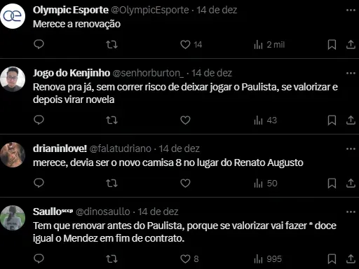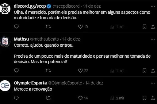 “Segundo apurou a reportagem do iG Esporte, o Alvinegro tem o interesse de renovar com o meio-campista Matheus Araújo, de 21 anos. O movimento pode acontecer no início de 2024”, destaca o site.
