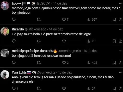 Avaliado pelas projeções do Transfermarkt em 2 milhões de euros (R$ 10 milhões), o meia-atacante tem contrato com o Corinthians apenas até dezembro de 2024.