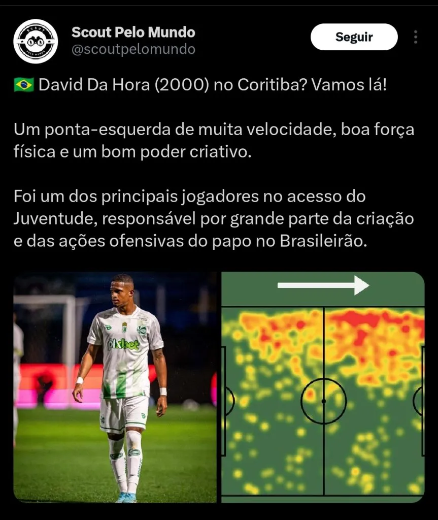 O GE reporta que o Coritiba chegou a um acordo com o Fortaleza pela contratação do atacante David da Hora.