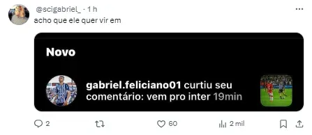 O clube tem um ‘emissário’ acompanhando o lateral Gabriel Feliciano, de 22 anos, que defende as cores do ASA, de Alagoas. A informação foi trazida pelo jornalista Samuel Batista, que cobre as informações do Colorado.