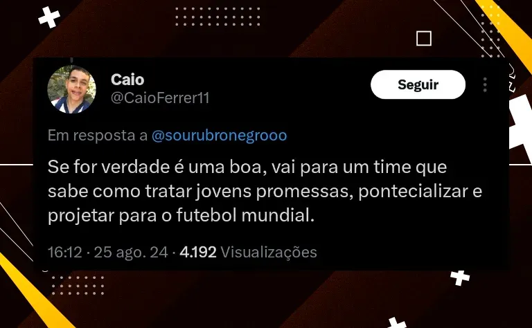 Considerado uma das principais promessas do time do Flamengo, o meia-atacante não vem tendo oportunidades com Tite. O treinador pouco utilizou ele na temporada e isso gerou uma certa revolta na torcida.