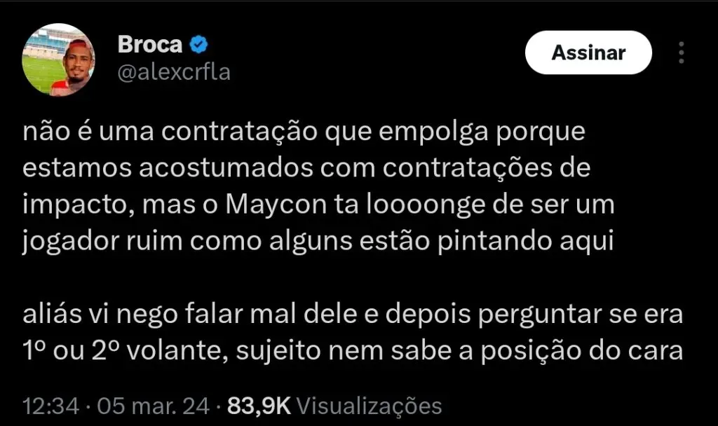 “Já foi para o Flamengo, já está no Flamengo. Esquece. O Augusto (presidente do Corinthians) conversou com ele ontem, mas não teve jeito né, Augusto. Ele foi um pedido do Tite, já está certo. Maycon já disse sim lá“, cravou o apresentador.