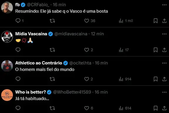 “O meia se surpreendeu com o placar, mas já tinha plena consciência do momento do time e entende que o resultado é mais uma evidência da necessidade de reforços do elenco”, disse a página.