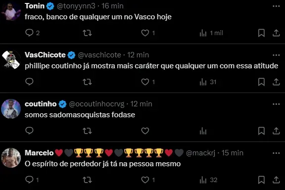 “Coutinho segue com muita vontade de voltar ao Cruz-Maltino”, frisou o perfil Mídia Vascaína, enfatizando o desejo de Philippe em voltar a defender o uniforme do Almirante.
