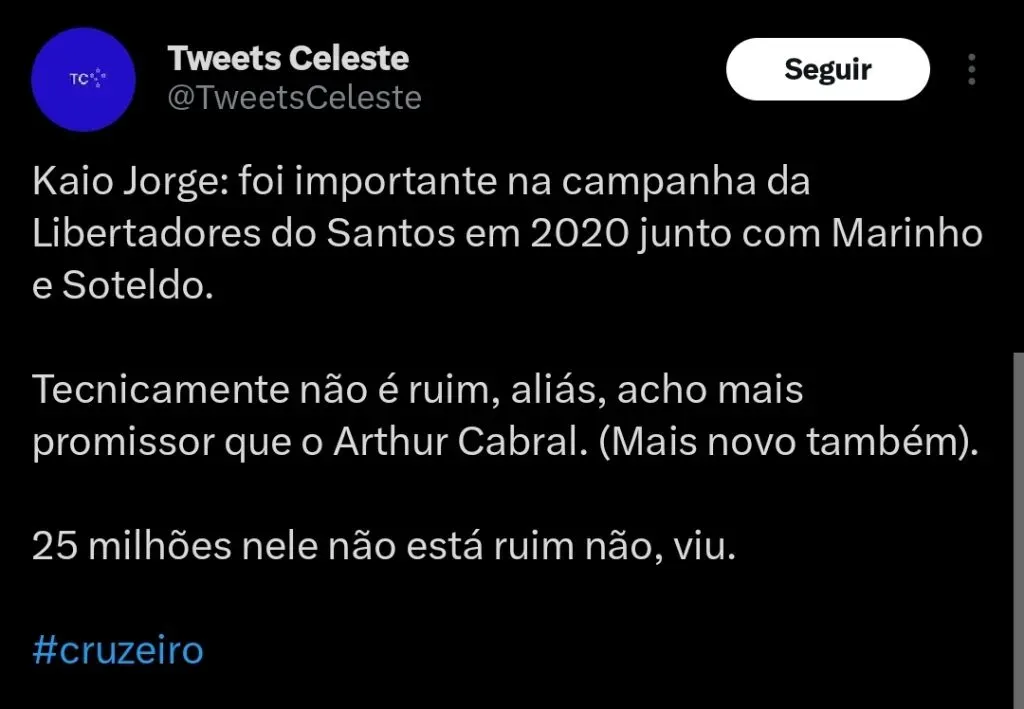 O Cruzeiro deve pagar esse montante em Arthur Cabral?