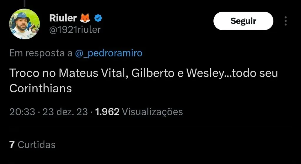 O jornalista Pedro Ramiro reporta que o Cruzeiro demonstrou interesse na contratação do meia Matheus Araújo, do Corinthians.