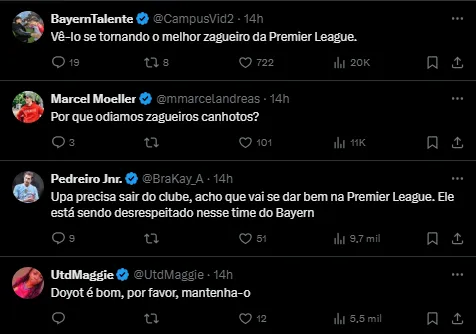 O beque francês, de 25 anos, portanto, tem a concorrência de Matthijs de Ligt, Kim-min Jae e Eric Dier. Os três são considerados atletas importantes no esquema de Vincent Kompany para a próxima temporada.