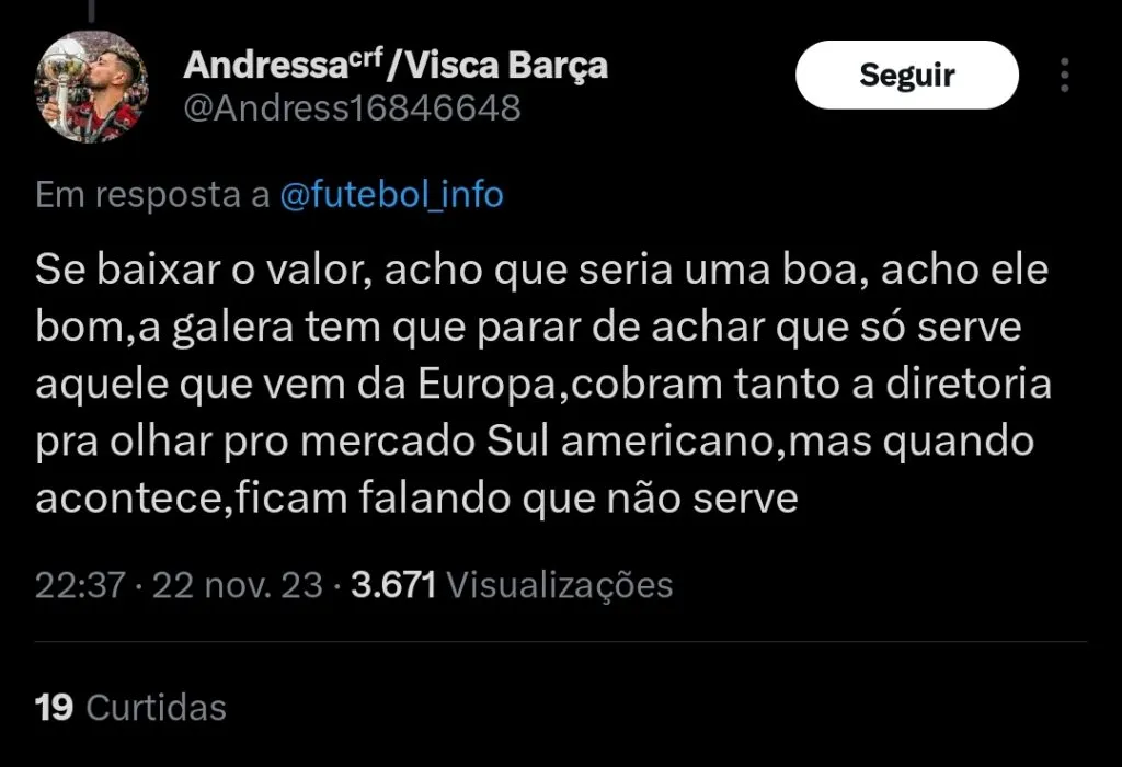 Além dele, o rubro negro busca outra opções para o seu plantel. A idéia é que a equipe brigue pelo máximo de títulos possíveis em 2024, e gaste um alto montante em contratações.