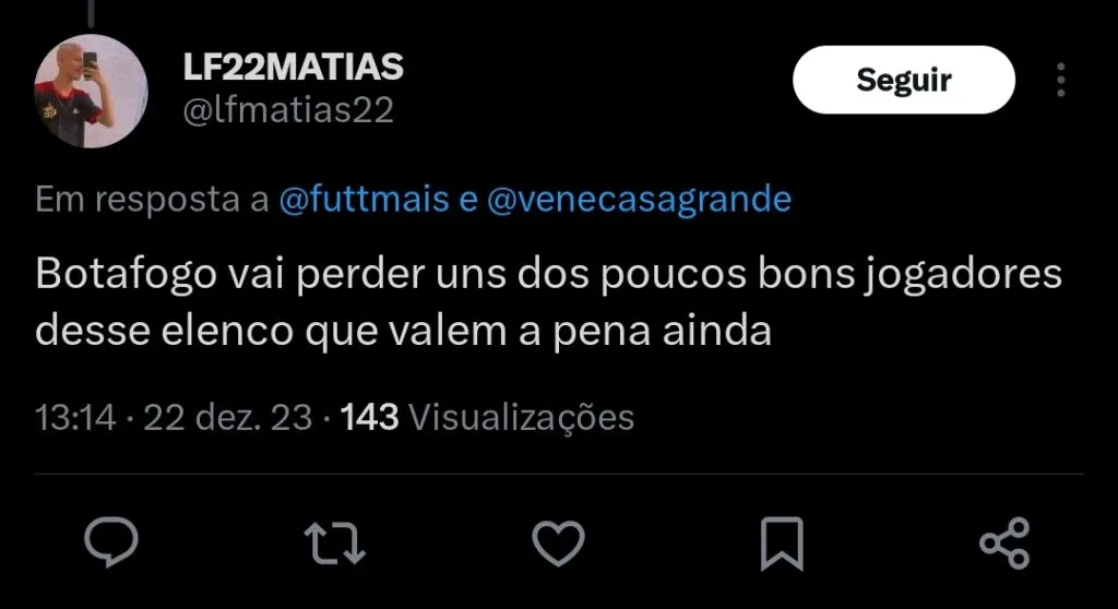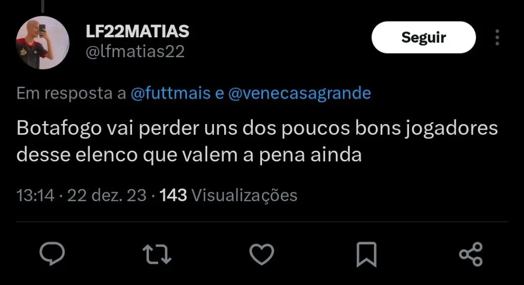 O atacante Luiz Henrique está se despedindo do Botafogo após atuar pelo clube por empréstimo. Ele pertence ao Marselha, e acabou não conseguindo engatar uma sequência como titular do alvinegro carioca.