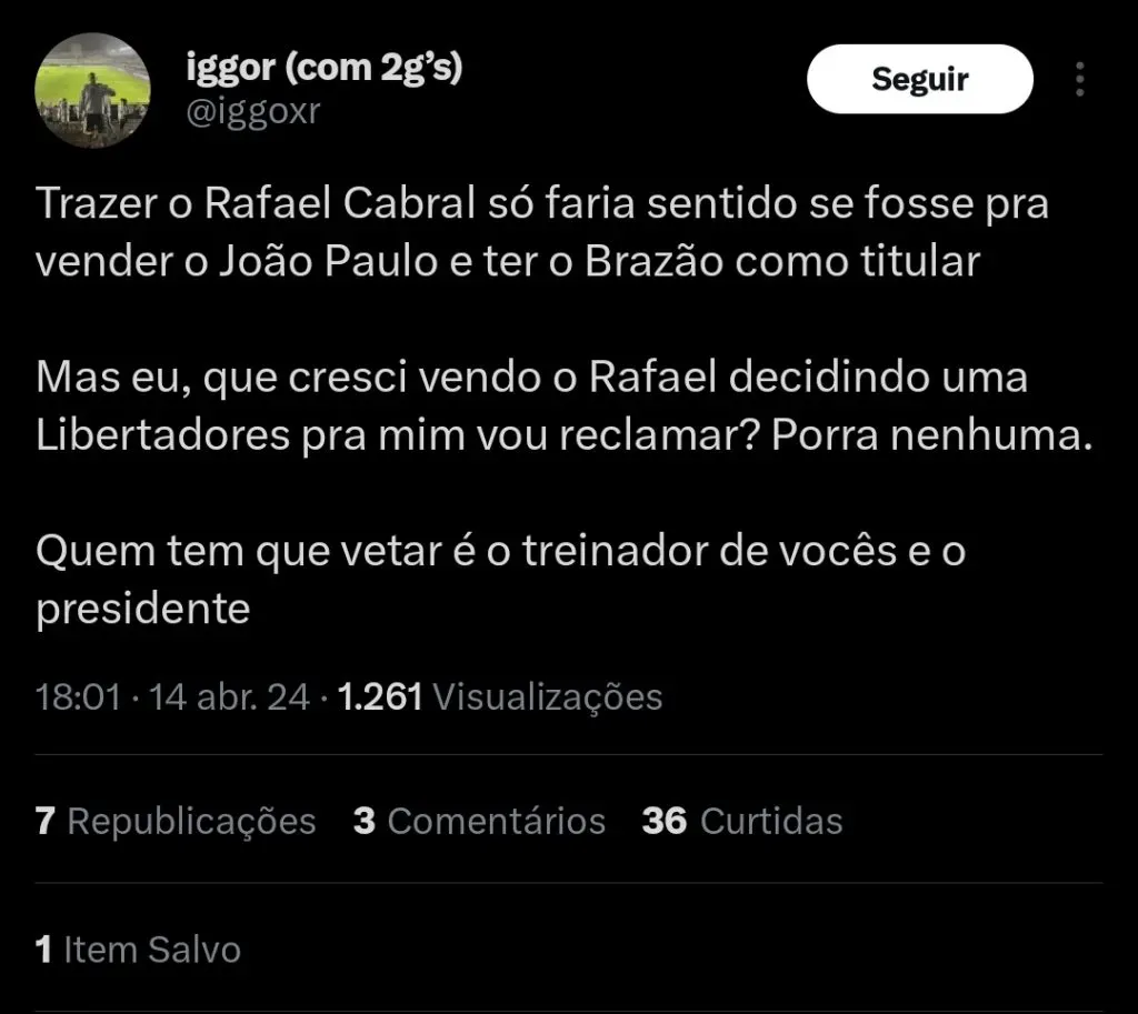 O goleiro Rafael Cabral não estará mais atuando com as cores do Cruzeiro após decisão tomada pela diretoria do clube.