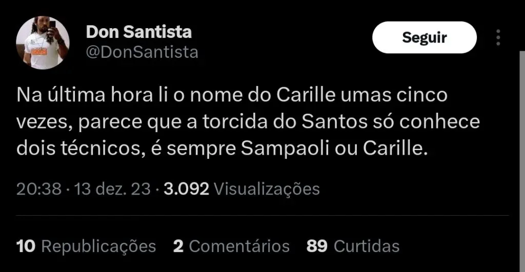 O portal Uol Esporte informa que a diretoria do Santos tem analisado uma movimentação para acertar o retorno de Fábio Carille na equipe em 2024.