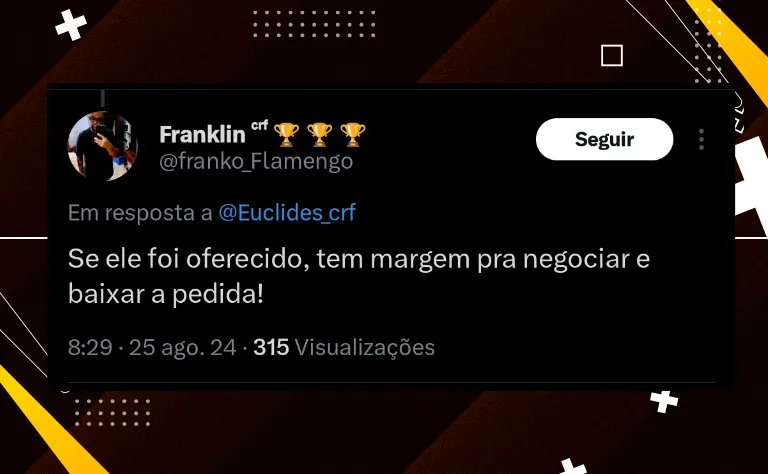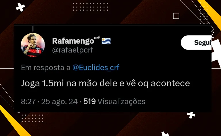 A diretoria do Flamengo até ponderou avançar nas conversas com Depay, mas não se vê disposta a pagar algo neste patamar financeiro a qualquer atleta. Eles focam agora nas chegadas de Carlos Alcaraz, Alex Sandro e Gonzalo Plata.