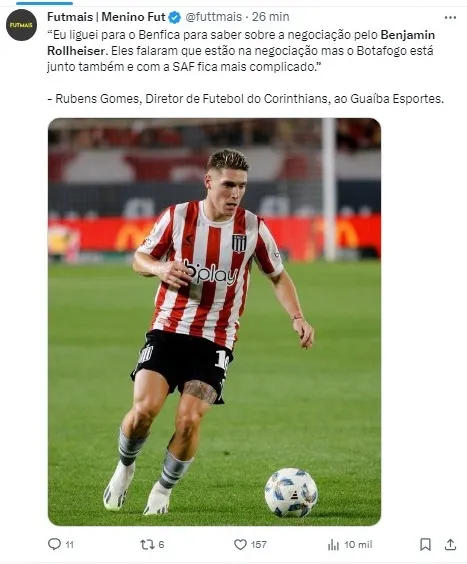 Em uma entrevista à rádio Guaíba, Rubens Gomes, diretor de futebol do Corinthians, confirmou a retirada do clube na disputa por Rollheiser devido à forte concorrência com Benfica e Botafogo. Gomes detalhou a abordagem do clube ao entrar em contato com o Benfica para entender a situação.