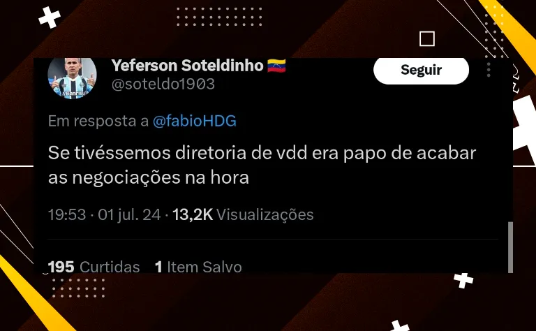 Os valores apresentados foram de cerca de R$400 mil mensais, e eles já tiveram uma resposta do camisa nove. Ele recusou a investida, mas ainda se mostrou disposto a negociar a sua ida para o Imortal.