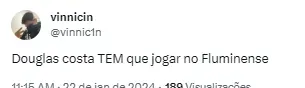 Mas outra informação nesta segunda-feira (22) chamou a atenção da torcida na web. Segundo informações do jornalista e narrador Juliano Britto, há clubes do Rio de Janeiro interessados na contratação de Douglas Costa.