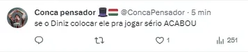 O jogador teria recebido uma ligação de Fernando Diniz para então jogar no Fluminense, ainda de acordo com o jornalista.