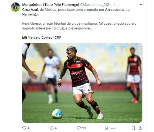 De Arrascaeta, de 29 anos, está no Flamengo desde 2019, após sua transferência do Cruzeiro. Desde então, ele se estabeleceu como um jogador fundamental para o Flamengo, contribuindo significativamente para os sucessos do clube.