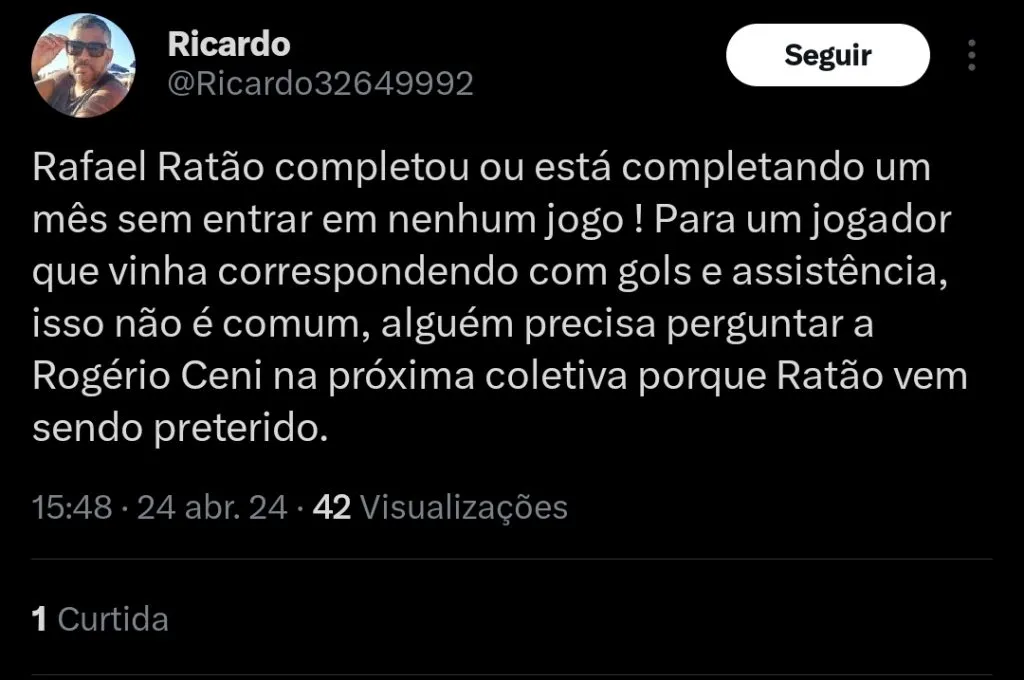 Agora, com aval da comissão técnica, o time de Rogério Ceni busca negociá-lo. Os dirigentes aguardam propostas pela venda do ponta, e não devem dificultar a sua saída para um adversário do Campeonato Brasileiro.