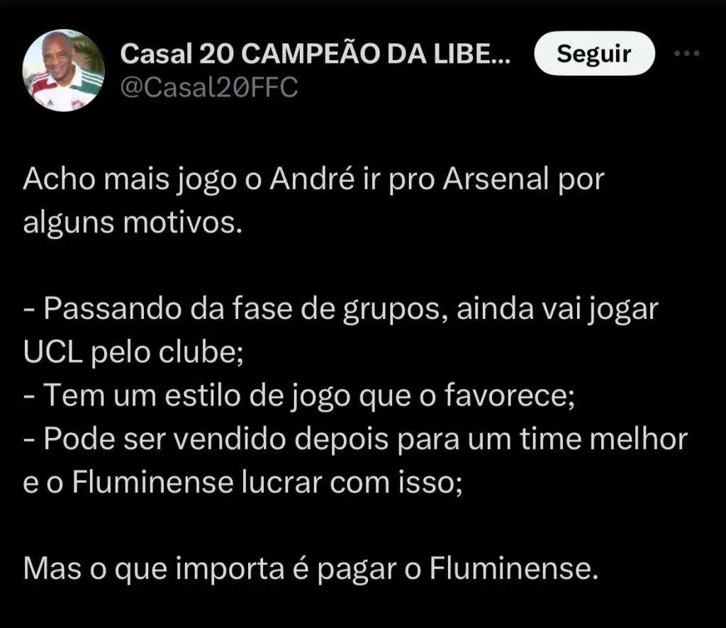 O Fluminense pode faturar mais de 30 milhões de Euros na venda de André. Na opinião do treinador Fernando Diniz, André “vai brilhar” no Futebol Europeu.