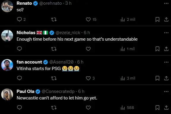 “Não tem correlação com o interesse do Paris Saint-Germain. Não é esperada nenhuma mudança em janeiro, já que ele agora é intocável pelo Newcastle”, acrescentou o italiano.