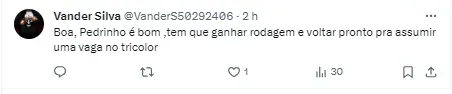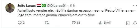 Já Pedro Vilhena atuou somente em uma partida como profissional pela equipe nesta temporada, mesmo tendo outras chances de estrear (2019 e 2021). O jogador fez boas partidas e foi destaque nas categorias de base do Tricolor Paulista.
