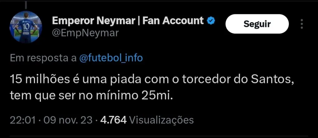 O clube não considera ouvir nenhuma proposta abaixo deste valor, e espera que a venda do jogador consiga ajudar bastante a situação financeira atual da equipe. A expectativa criada pelo Santos é que uma transferência seja concluída já em janeiro de 2024.