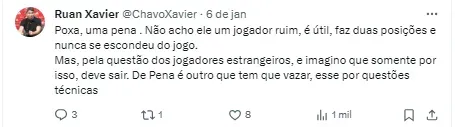 Porém, há outro nome que não deve ficar para os planos do técnico Eduardo Coudet para 2024.